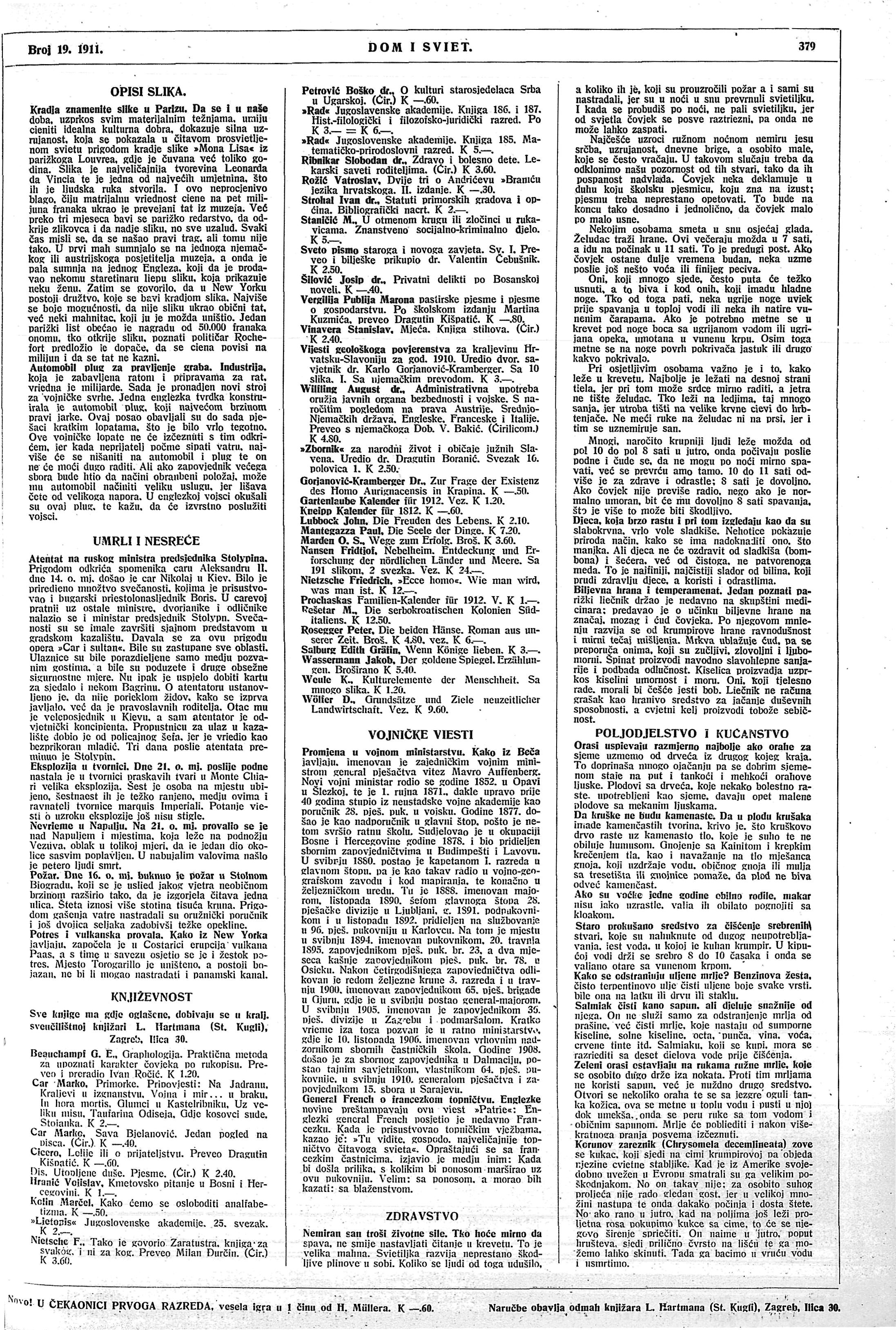 • Kradja znamenite slike u Parizu, Dom i sviet, 1. listopada 1911.