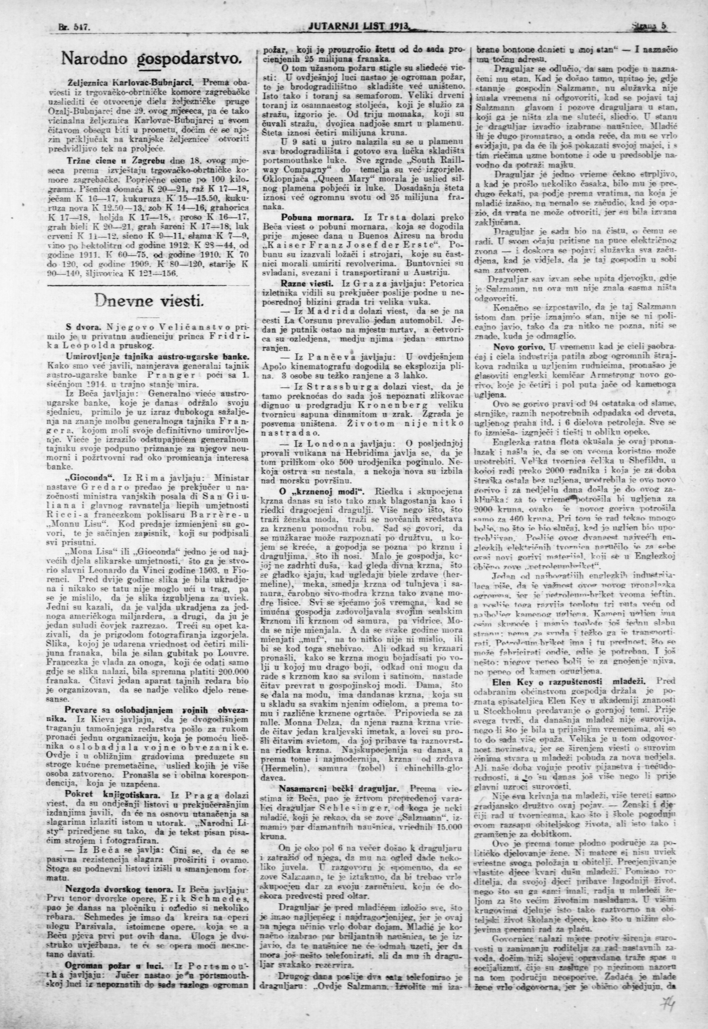 • Gioconda, Jutarnji list, 21. prosinca 1913.