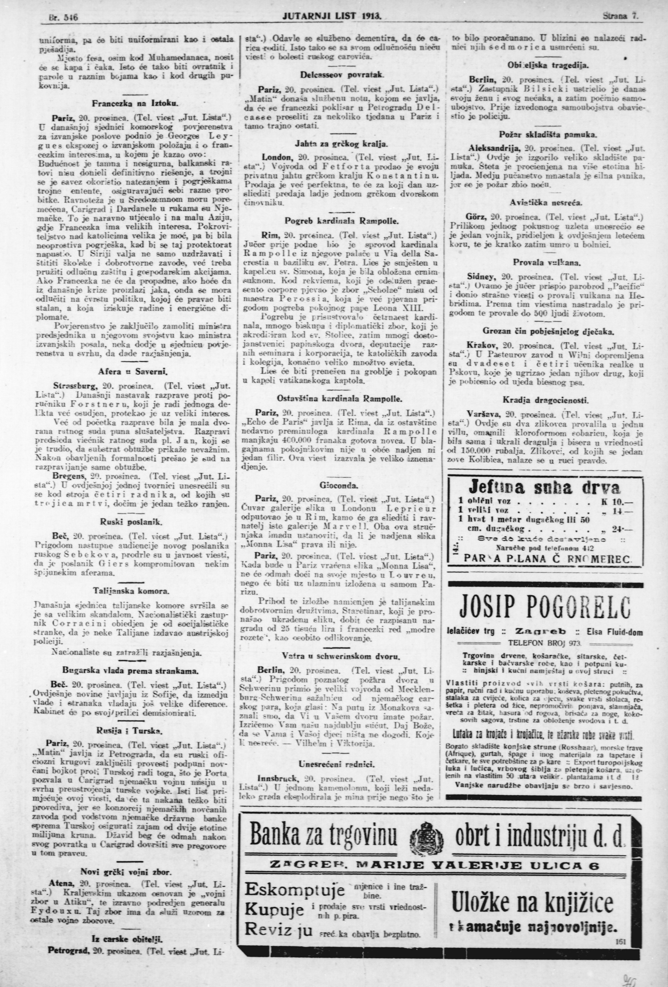 vijest iz 1913.