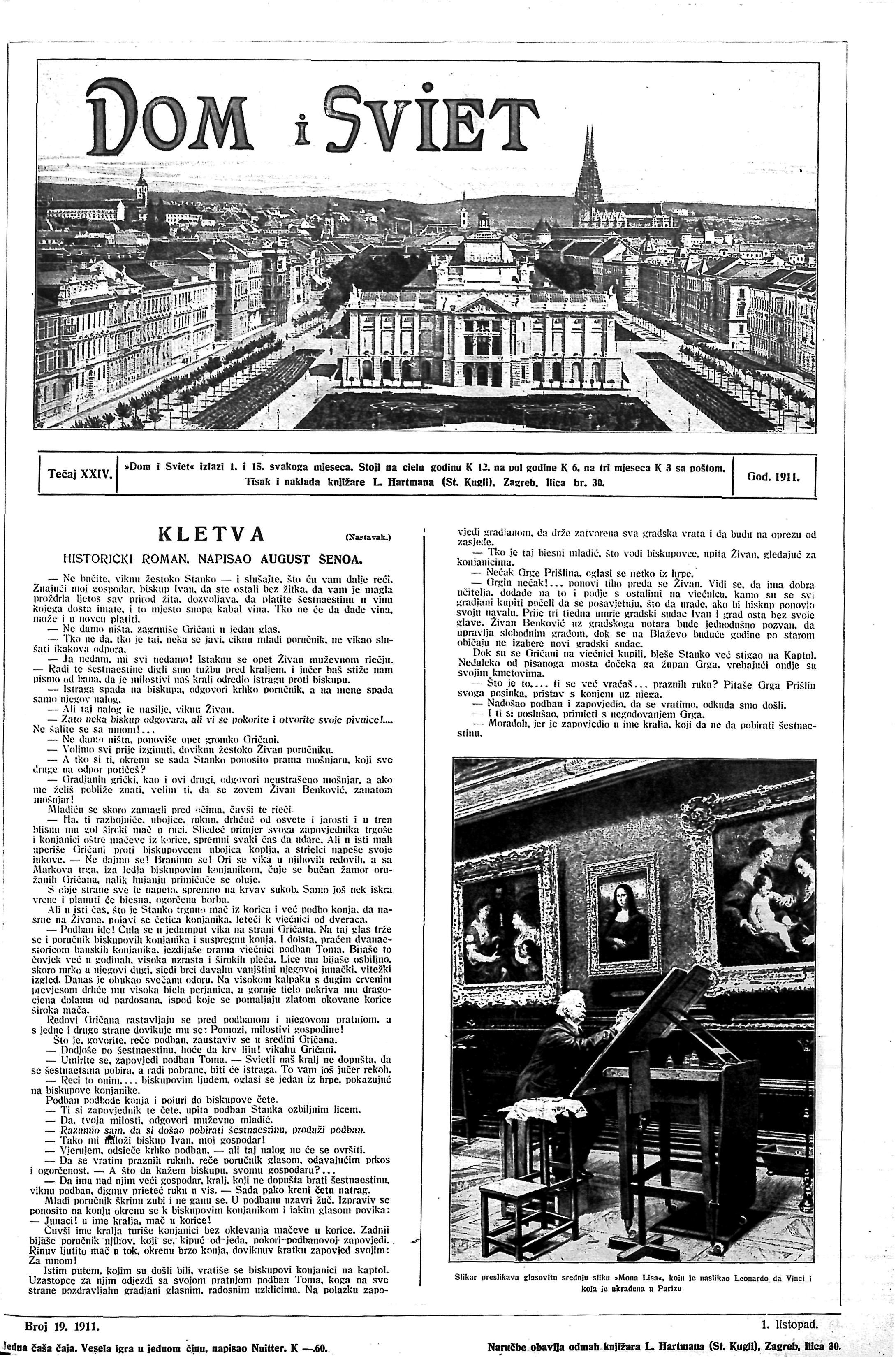 Kradja znamenite slike u Parizu, Dom i sviet, 1. listopada 1911.