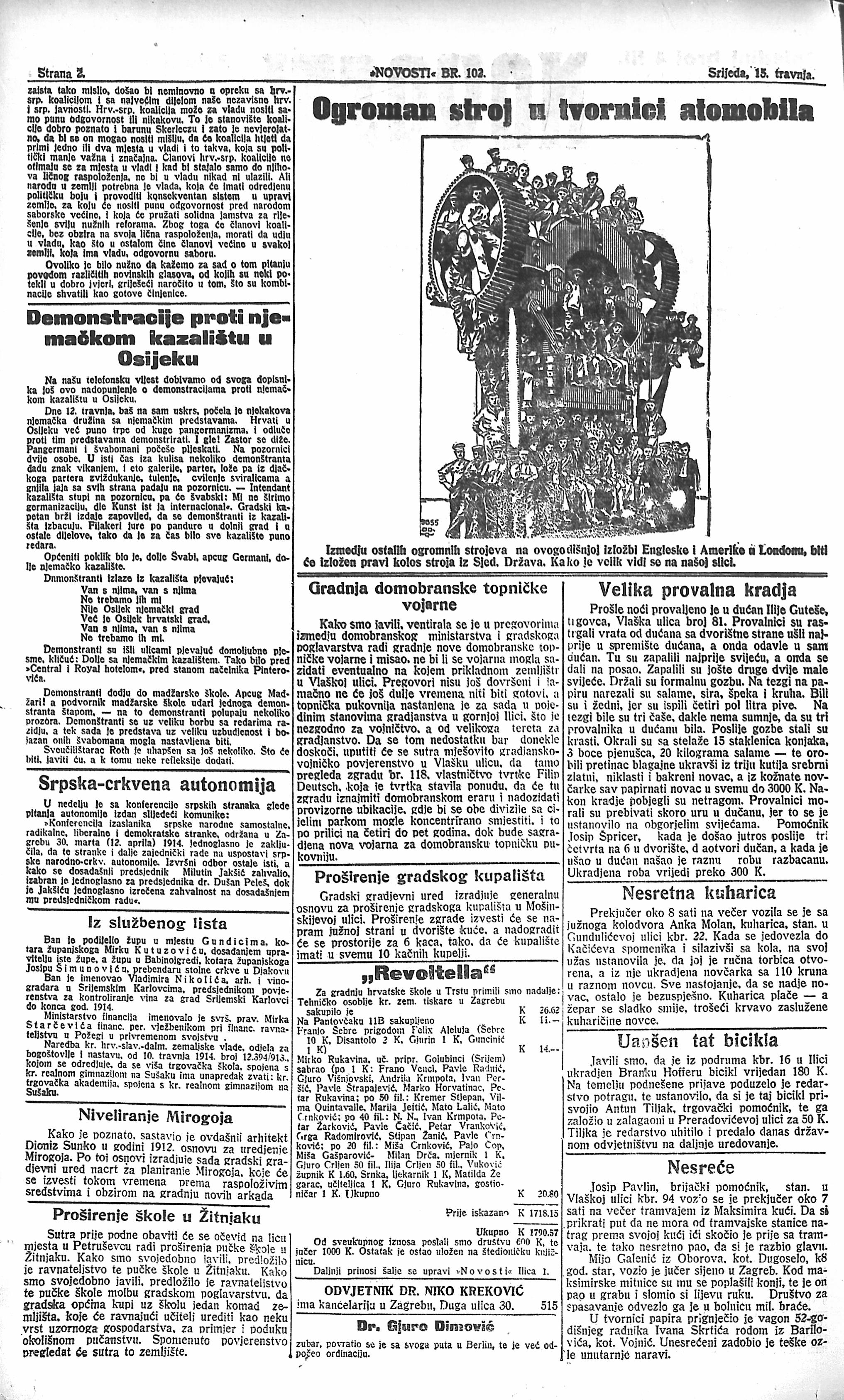 Stroj u tvornici automobila, Novosti, 15. travnja 1914.