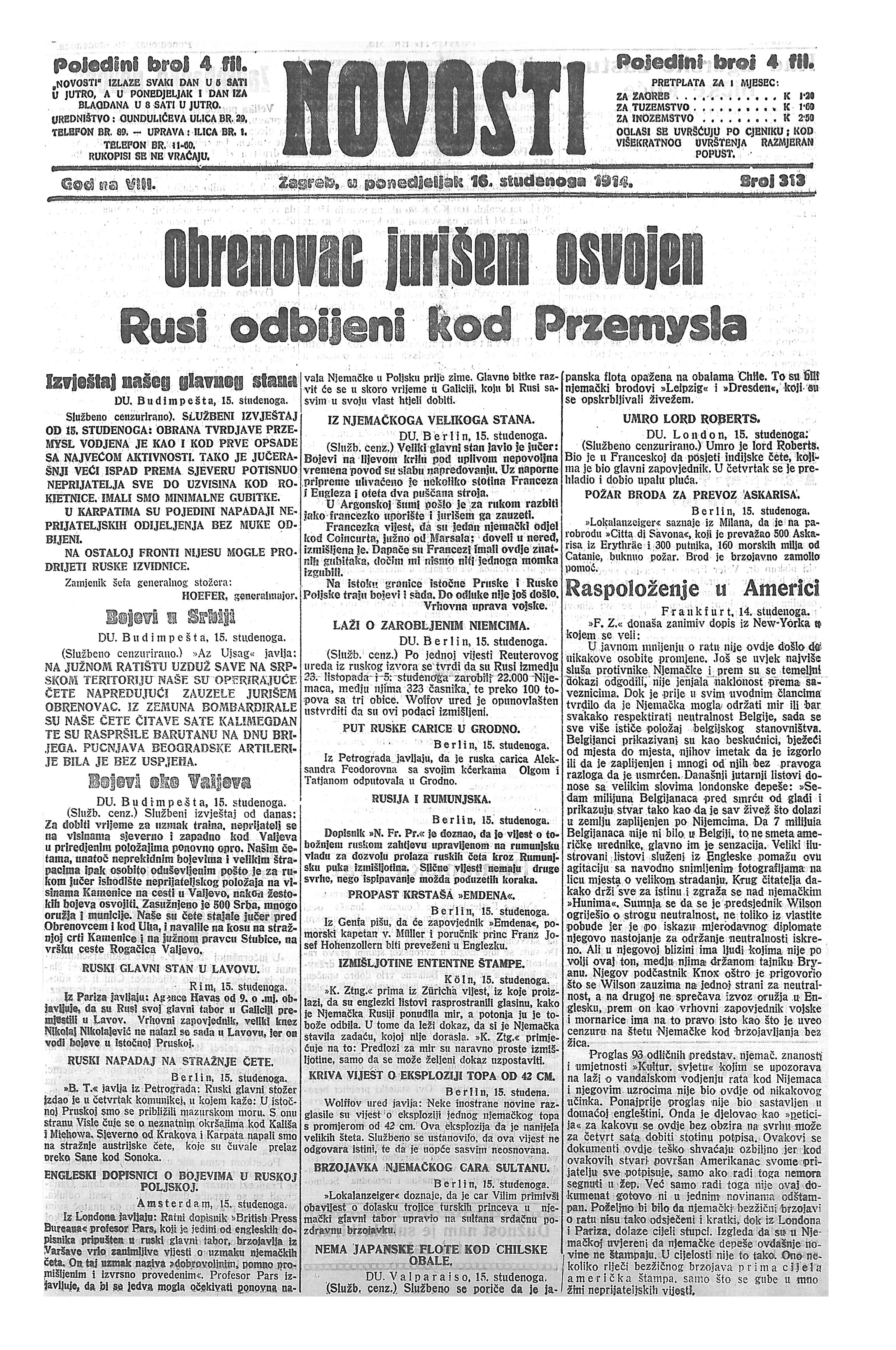 Bojevi u Srbiji, Novosti, 16. studenoga 1914.