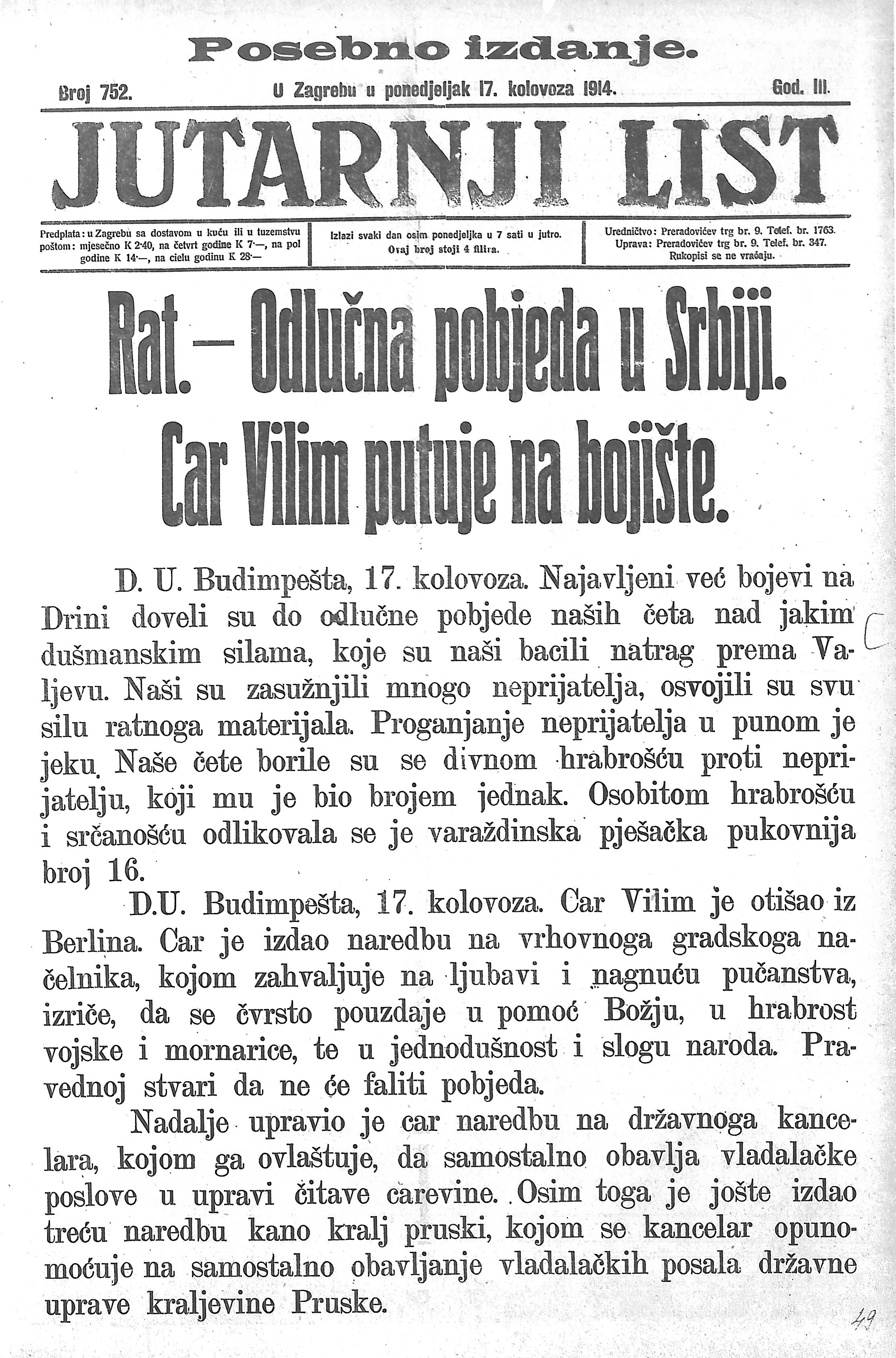 Jutarnji list, 17. kolovoza 1914.