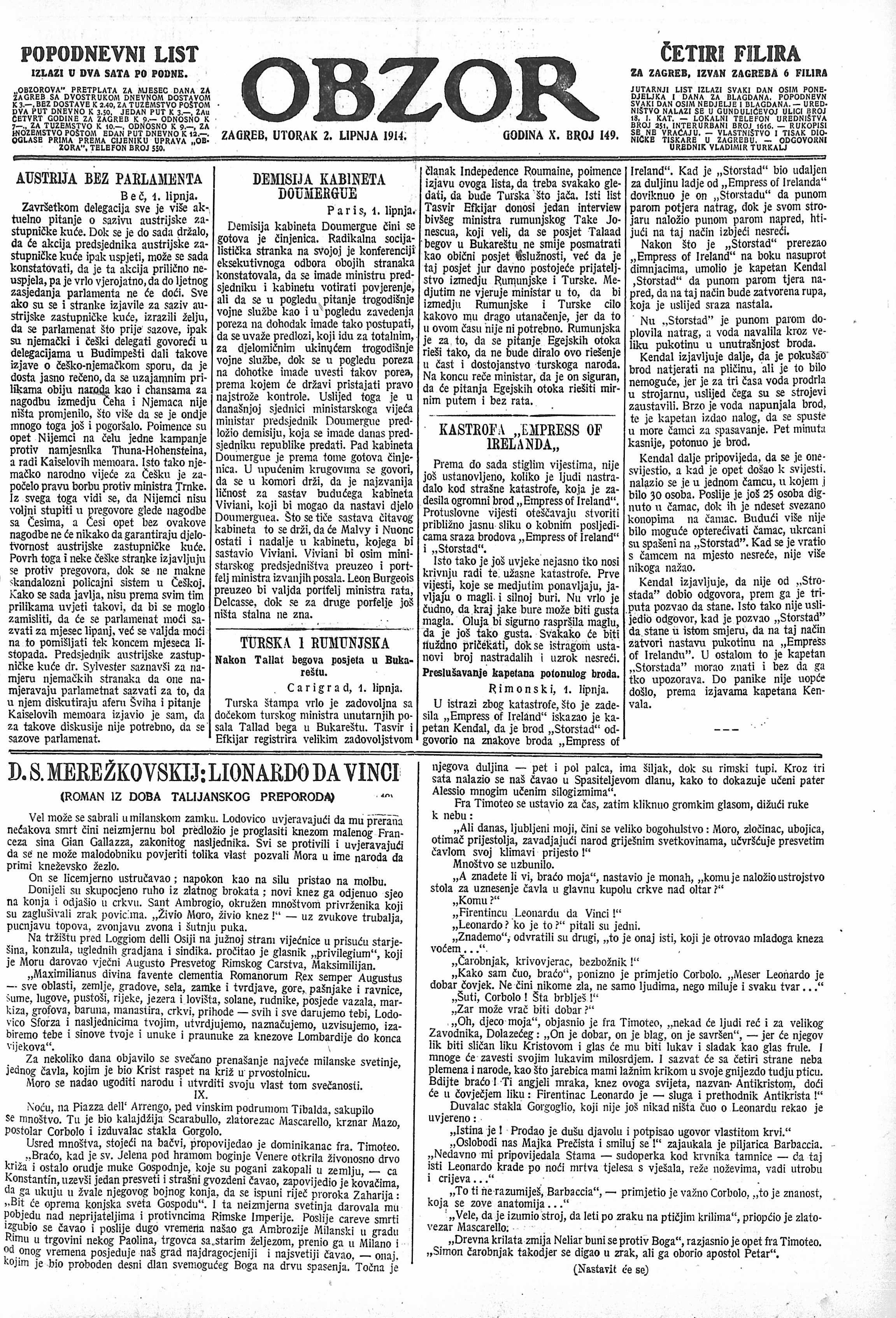 Katastrofa “Empress of Irelanda”, Obzor, 2. lipnja 1914.