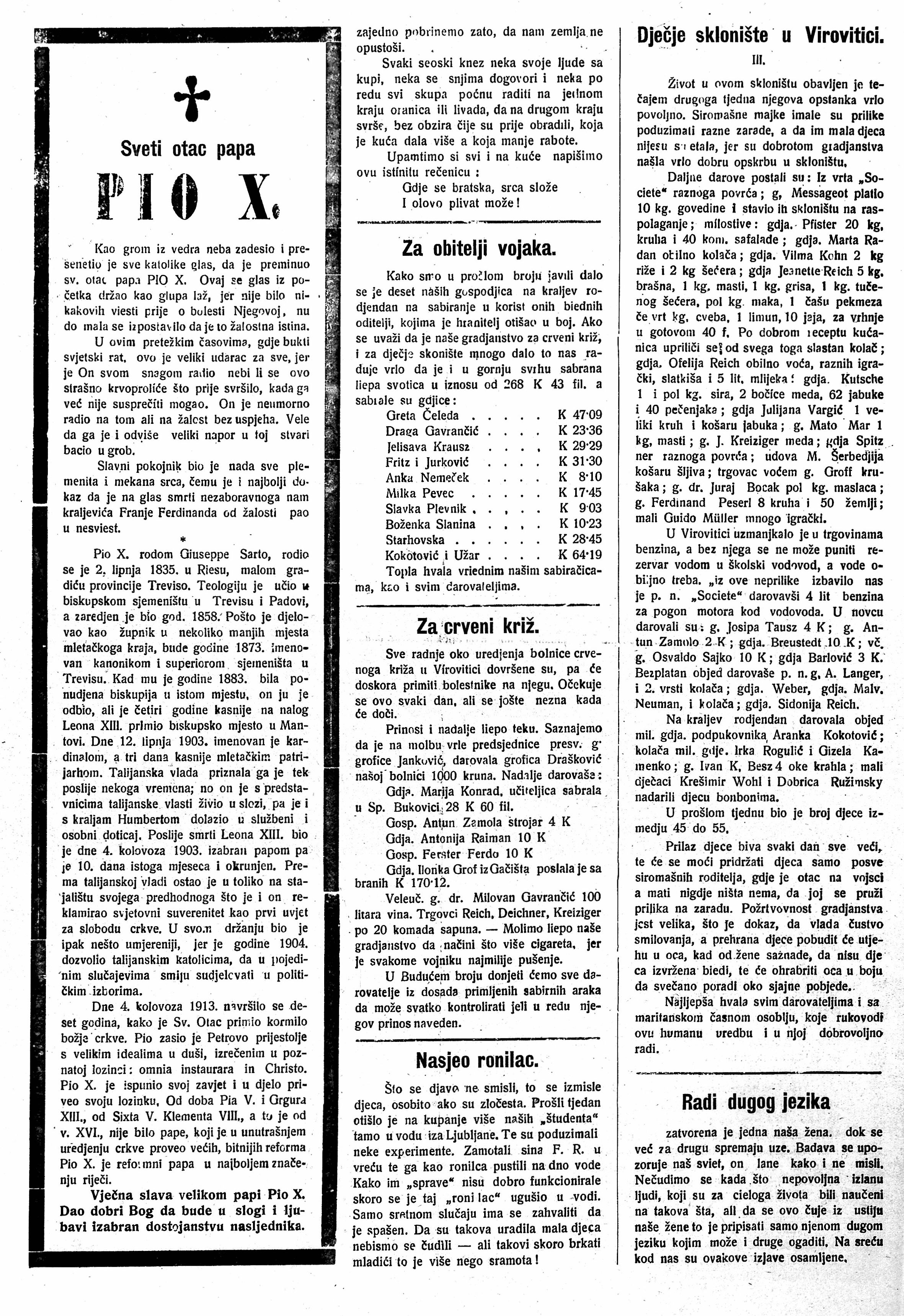 Za obitelji vojaka, Virovitičan, 23. kolovoza 1914.