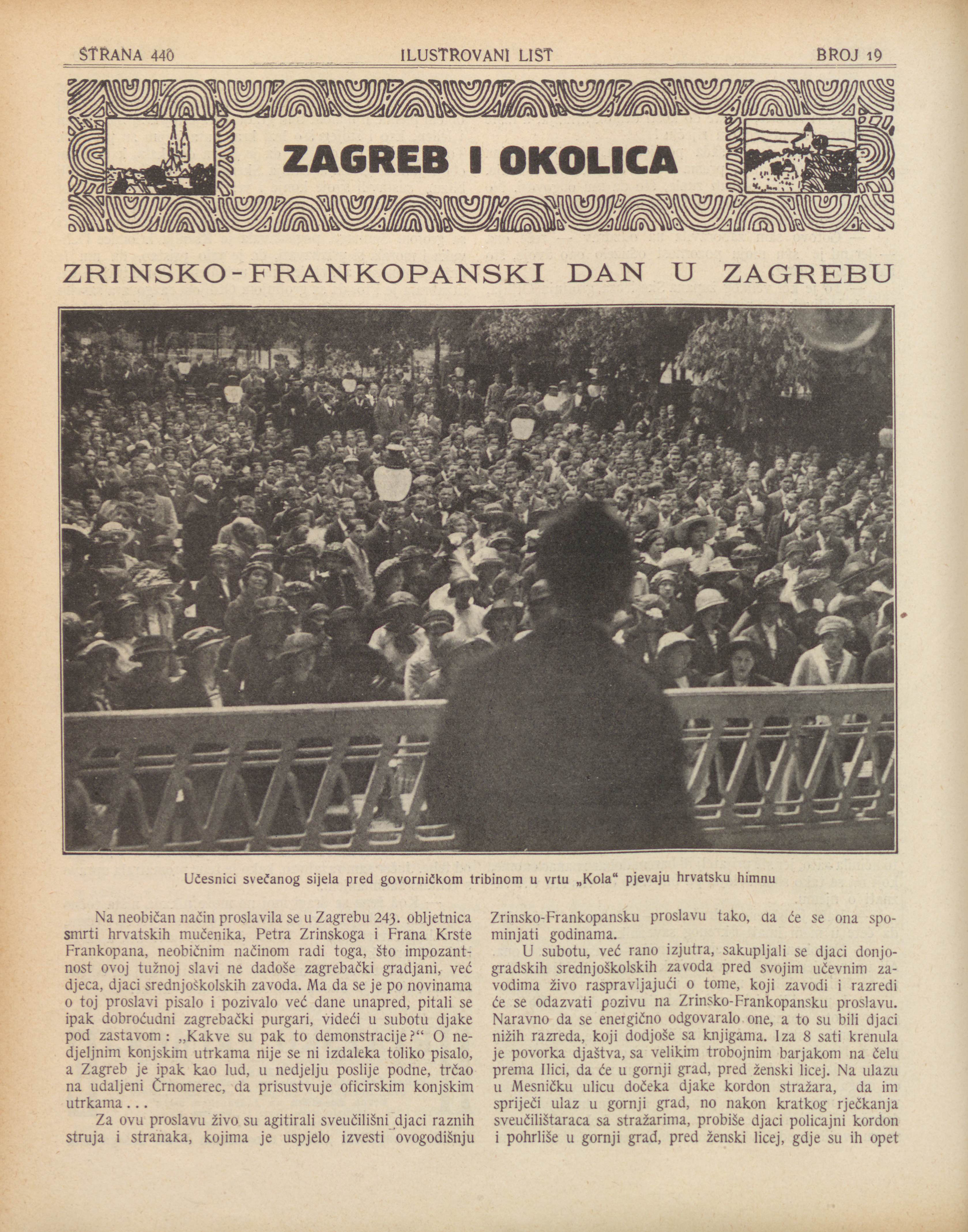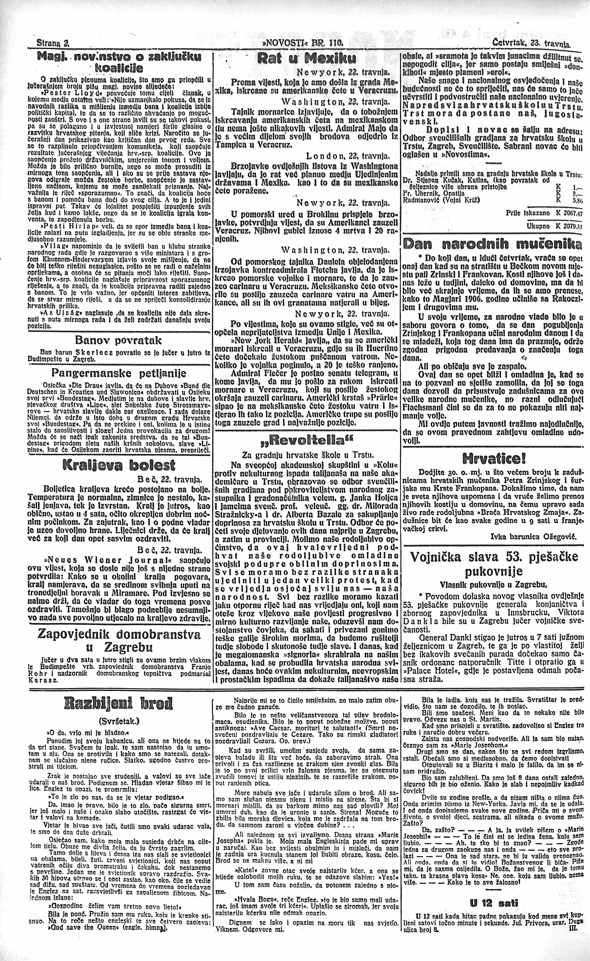 Zadušnica Zrinjskog i Frankopana, Novosti, 23. travnja 1914.
