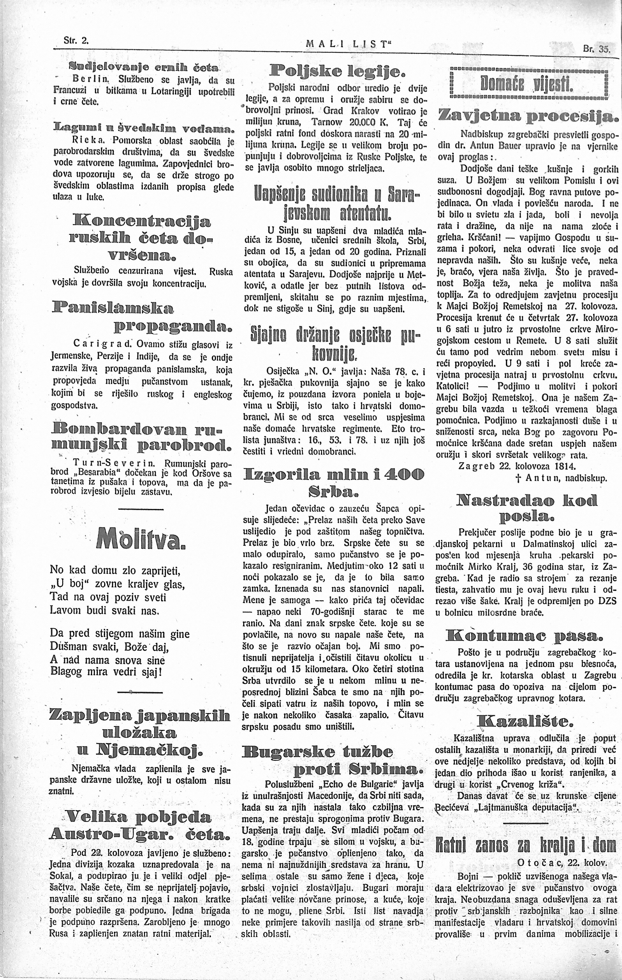 Uapšenje sudionika u Sarajevskom atentatu, Mali list, 26. kolovoza 1914.