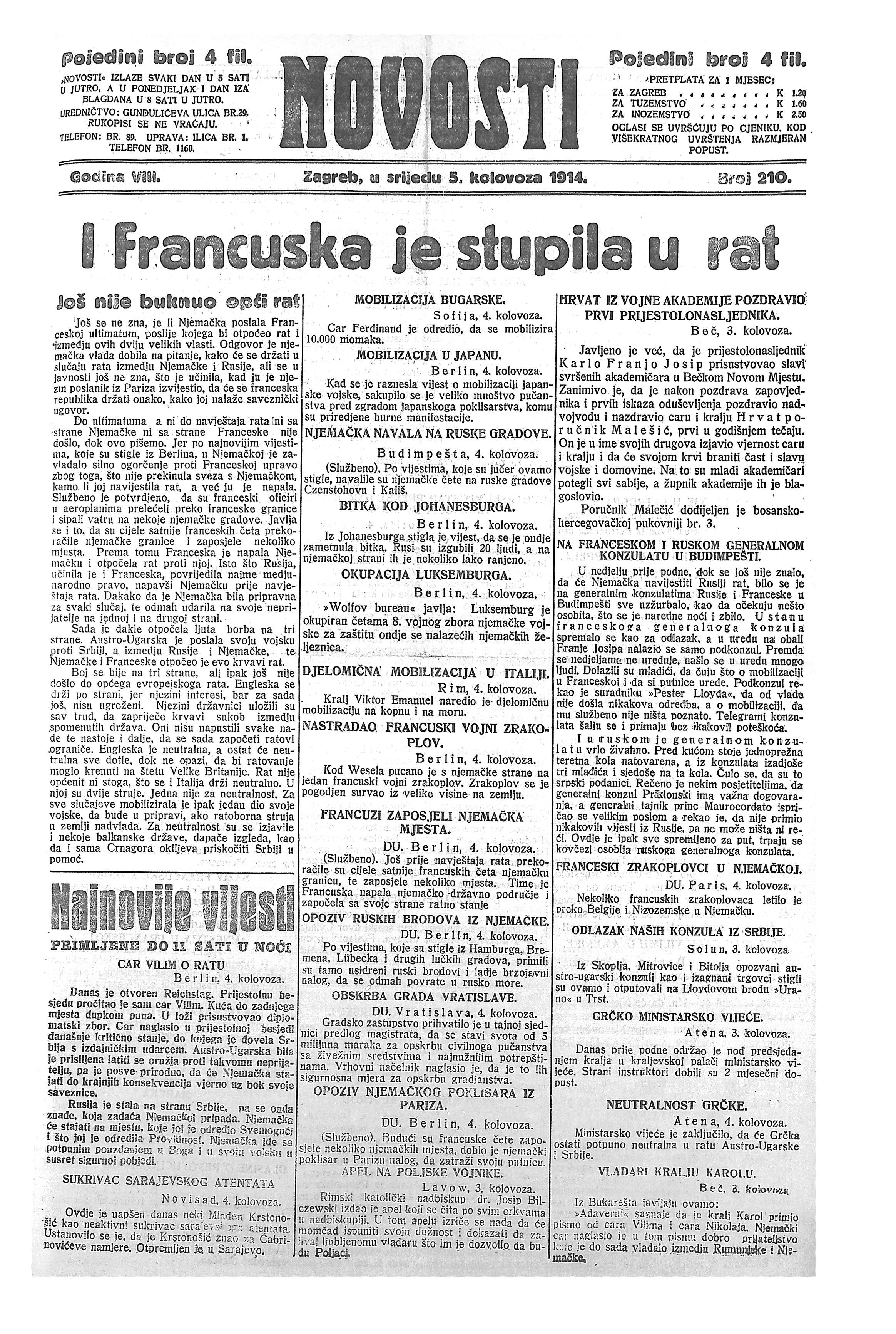 Novosti, 5. kolovoza 1914.