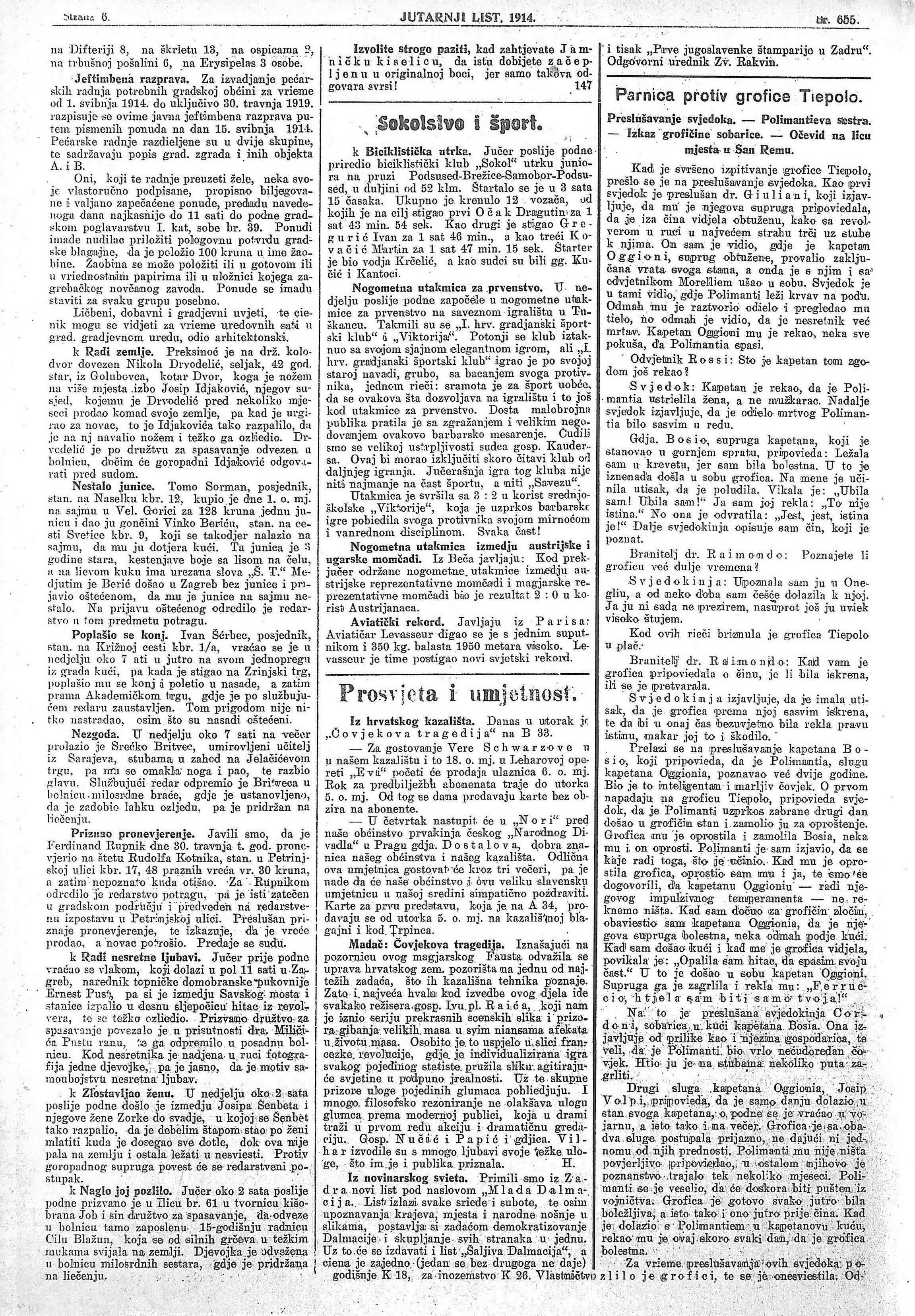 Biciklistička utrka, Jutarnji list, 5. svibnja 1914.