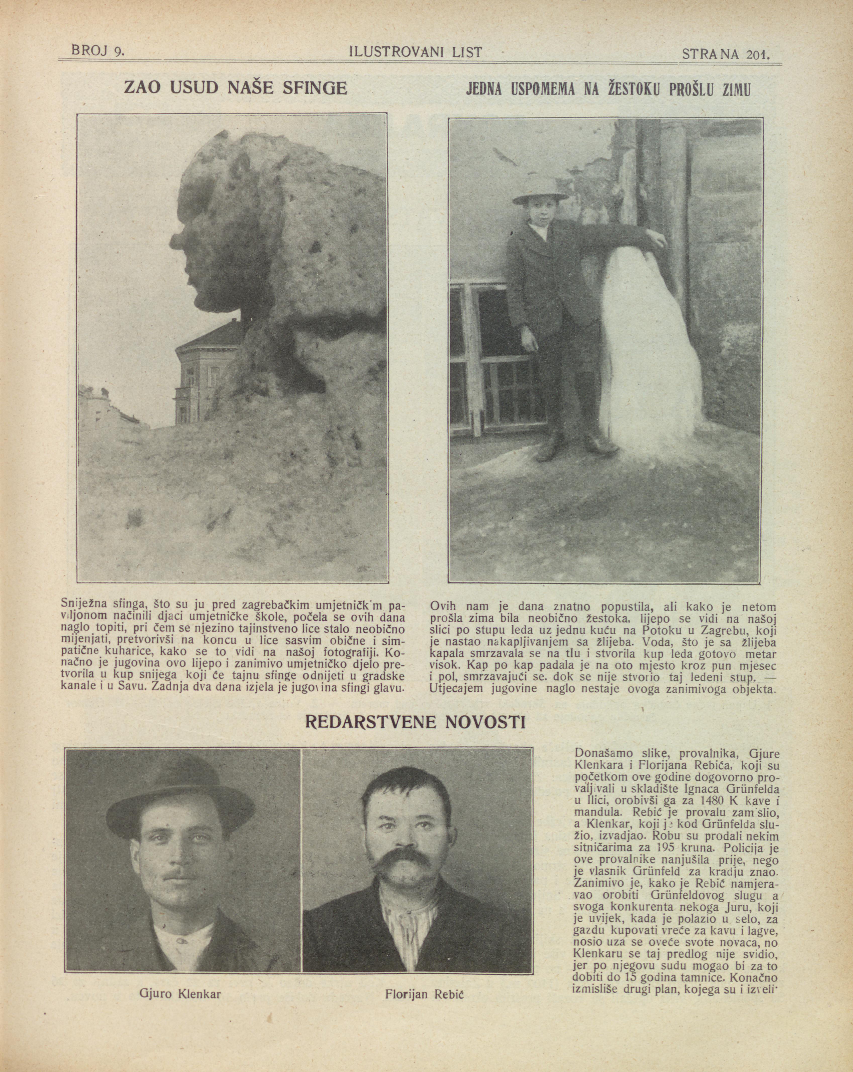 Sniježna sfinga, što su je pred Umjetničkim paviljonom načinili djaci Umjetničke škole.