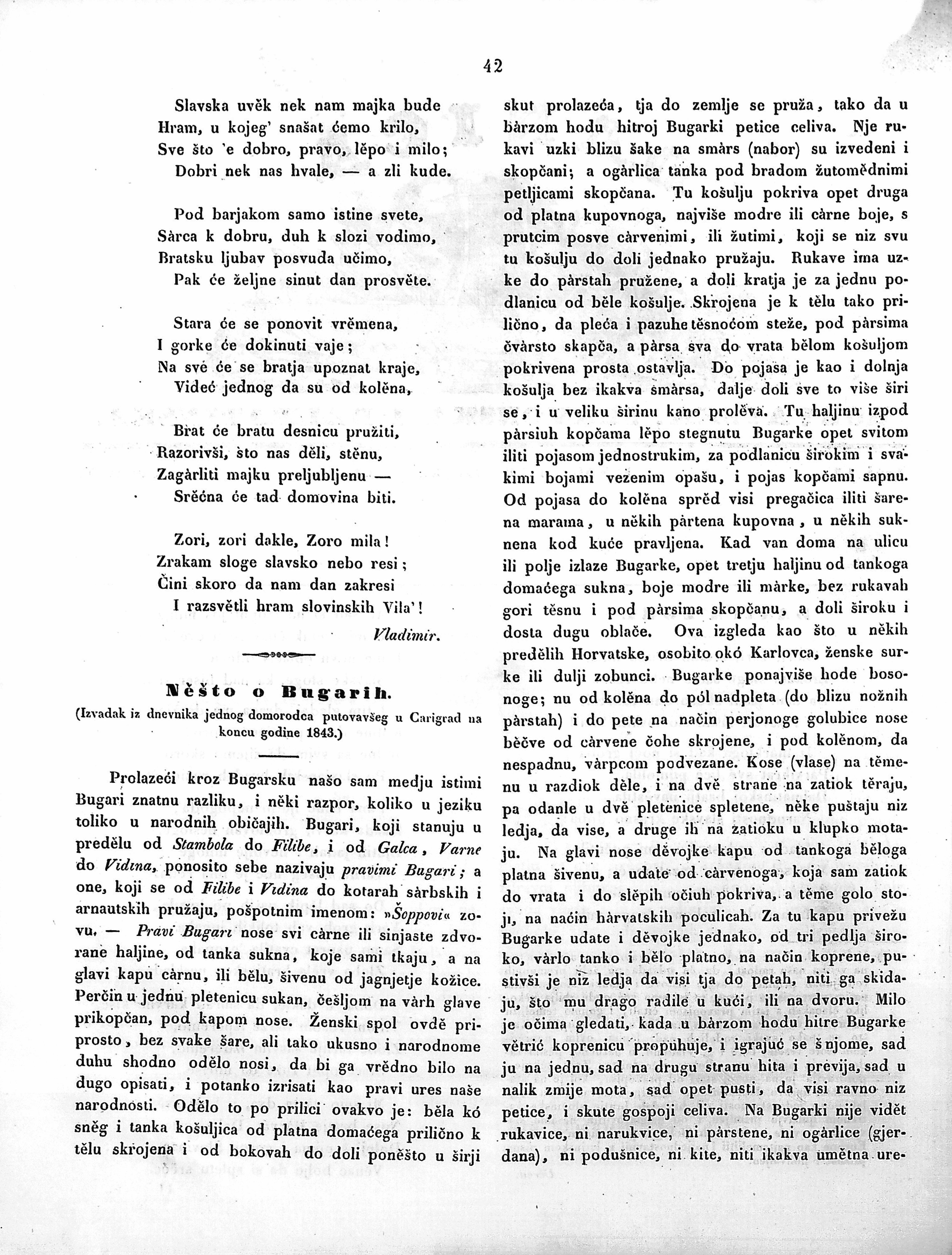 Nešto o Bugarih // Danica horvatska, slavonska i dalmatinska, Zagreb, 1844., br. 11
