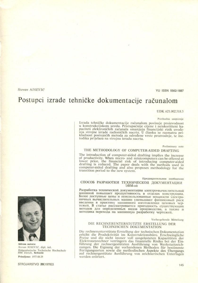 Nišević, Stevan. 1978. Postupci izrade tehničke dokumentacije računalom. GOD XX, 3. 145.-149.