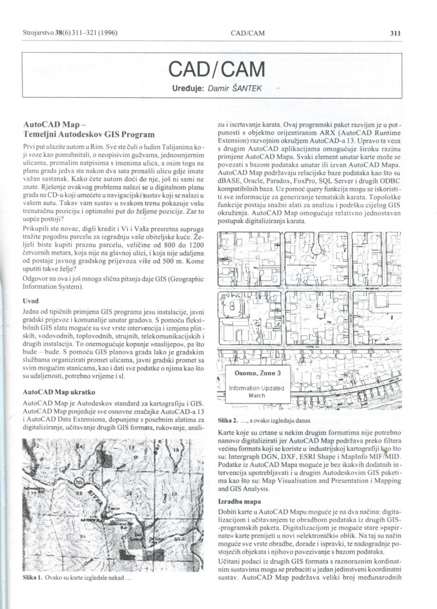 Šantek, Damir. 1996. AutoCAD Map - temeljni Autodeskov GIS program. XXXVIII.6, 311.-321.
