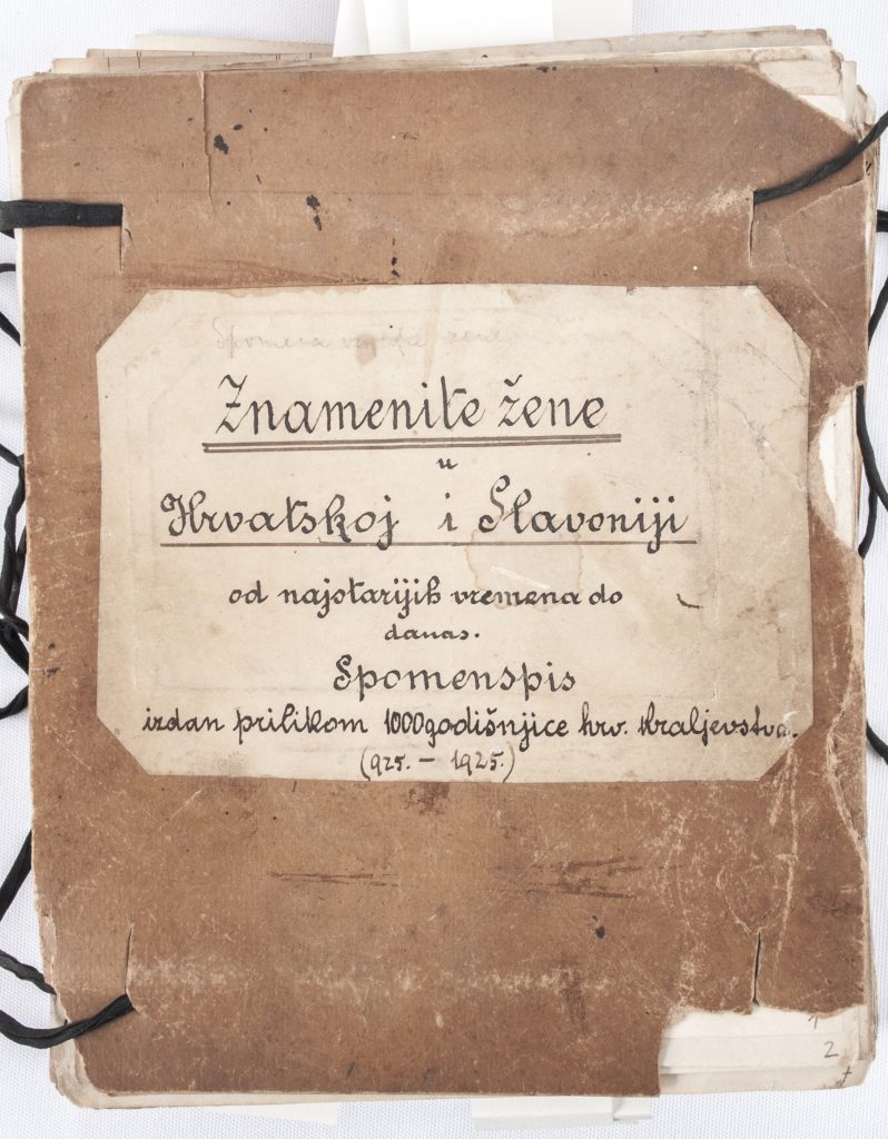 Sveščić rukopisa Znamenite žene u Hrvatskoj i Slavoniji od najstarijih vremena do danas. Spomenspis izdan uoči tisućgodišnjice osnutka hrvatskoga kraljevstva (925–1925)