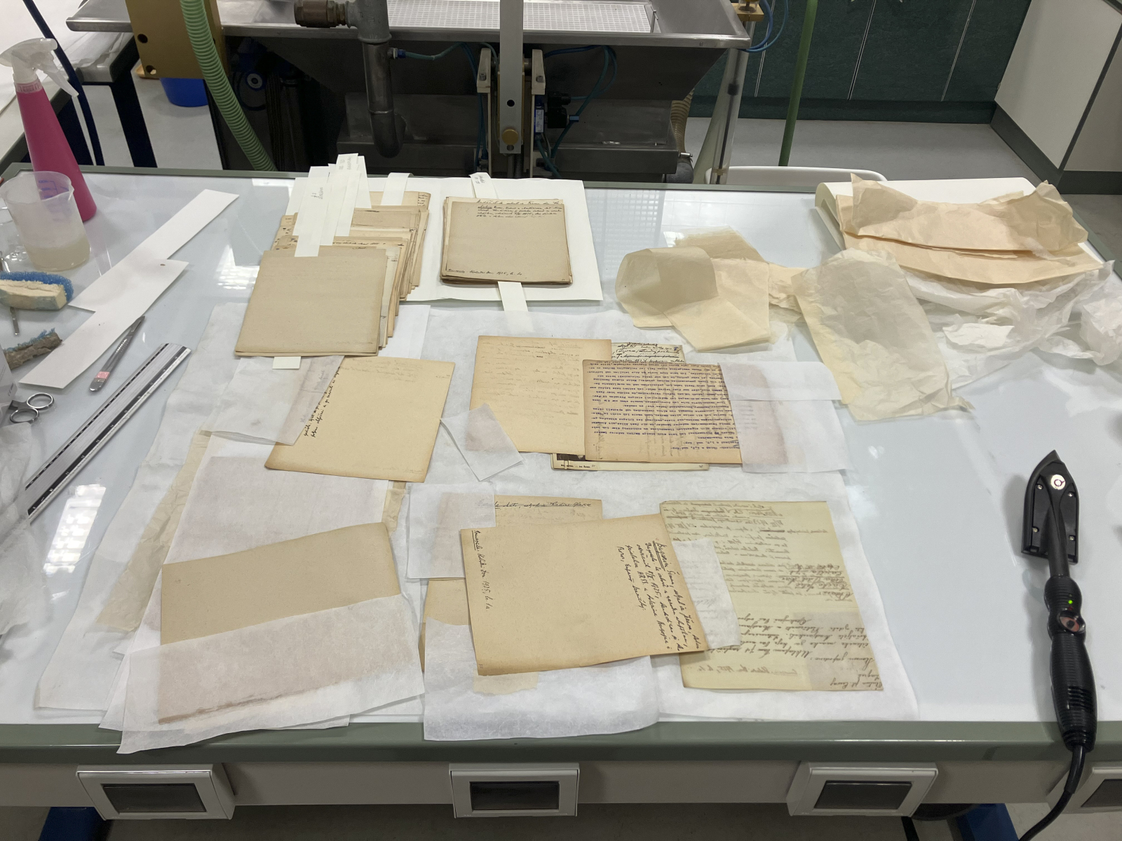 Nakon što su listovi rukopisa složeni ispravnim redoslijedom, napravljena je konzervatorsko-restauratorska priprema rukopisa za trajnu pohranu. Veće nakupine prašine na listovima koje su ometale čitljivost, uklonjene su konzervatorskim brisaćim sredstvima. Sve metalne spajalice i pribadače koje nisu izrađene od nehrđajućih slitina uklonjene su i po potrebi zamijenjene onima od stabilnih materijala. Ljepljive trake su uklanjane i po potrebi zamijenjene trakama japanskog papira i metil-celuloznog ljepila. Presavijeni uglovi i oštećeni rubovi izravnati su restauratorskim glačalom pri niskoj temperaturi, a veća mehanička oštećenja poput poderotina, za koje je postojao rizik od jačeg oštećenja ili gubitka dijela izvornika tijekom daljnje manipulacije i korištenja, restaurirana su japanskim papirima odgovarajuće debljine, gustoće i boje i metil-celuloznim ljepilom. Tako pripremljeni listovi pohranjeni su u nove zaštitne kutije od beskiselinske ljepenke izrađene po mjeri svakog sveska.