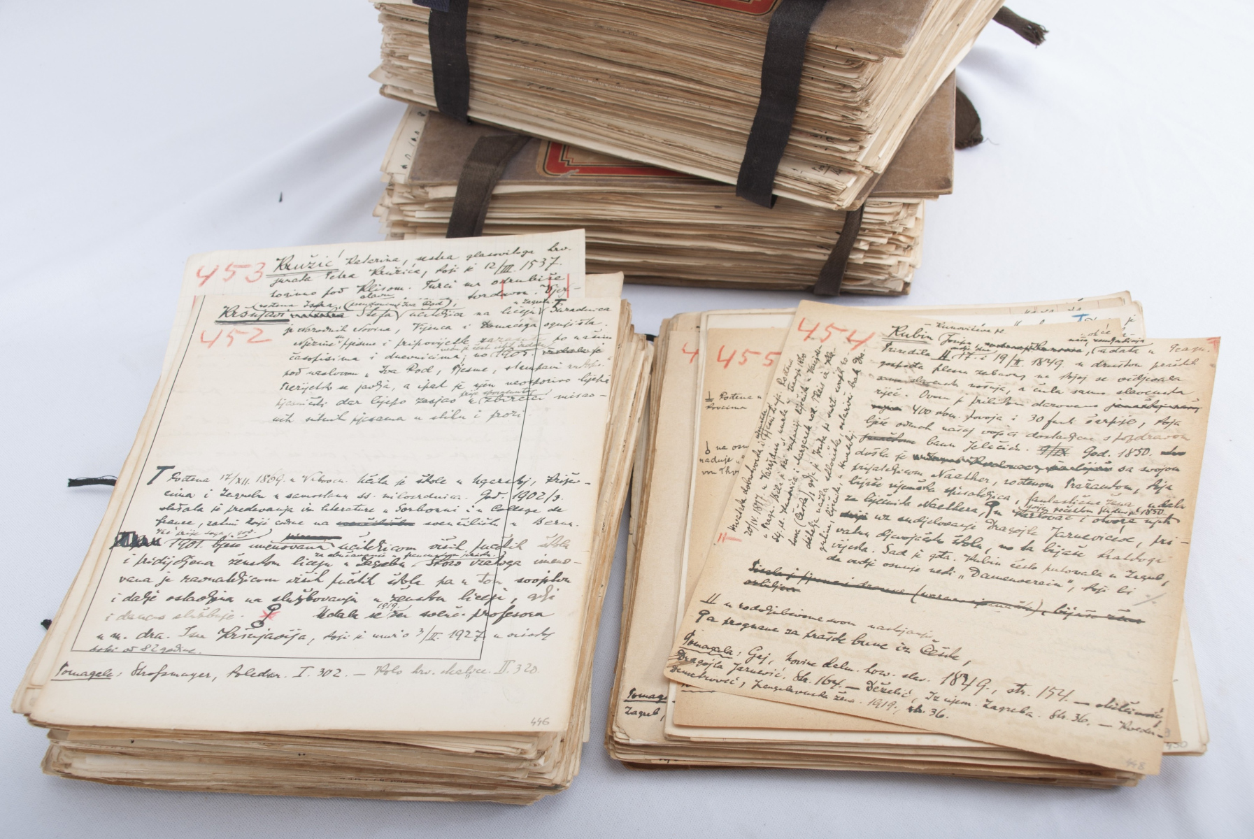 Svi rukopisi napisani su na listovima veličine otprilike 25 x 20 centimetara, nerijetko na već iskorištenim papirima koji su autoru došli pod ruku, pa često i na poleđini službenih dokumenata. Većina listova ima izvorno izvedenu folijaciju crvenom i plavom grafitnom olovkom, koja je mijenjana po nekoliko puta sugerirajući na višestruke autorove redakcije teksta. Između listova na mjestima koje je autor predvidio za biografsku natuknicu pojedine osobe ostala su pisma. Naime, Cuvaj je često tražio od osobe o kojoj piše natuknicu da sama napiše svoj životopis, koji je onda on preoblikovao i skratio. Također, na pojedinim listovima zalijepljeni su ispravci teksta preko prve verzije, a često i novinski isječci. Trenutno stanje ostavštine sugerira da su rukopisi tek djelomično sačuvani te je moguće da se u budućnosti pronađu dijelovi koje nedostaju.